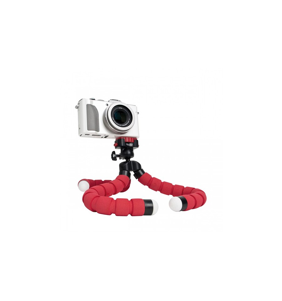 A todo esto es necesario añadir que el soporte pensado para anexar una cámara al trípode flexible también permite la incorporación de otros dispositivos, tales como smartphones o incluso tabletas. Puede colocar prácticamente cualquier dispositivo con capacidad para tomar fotografías y vídeos y fijarlo de manera inverosímil en cualquier objeto o superficie. Finalmente, también le recomendamos que experimente con su cabezal giratorio de hasta 360°.