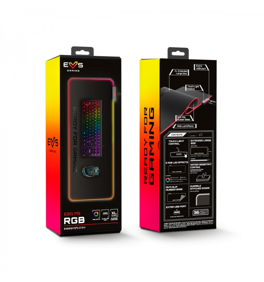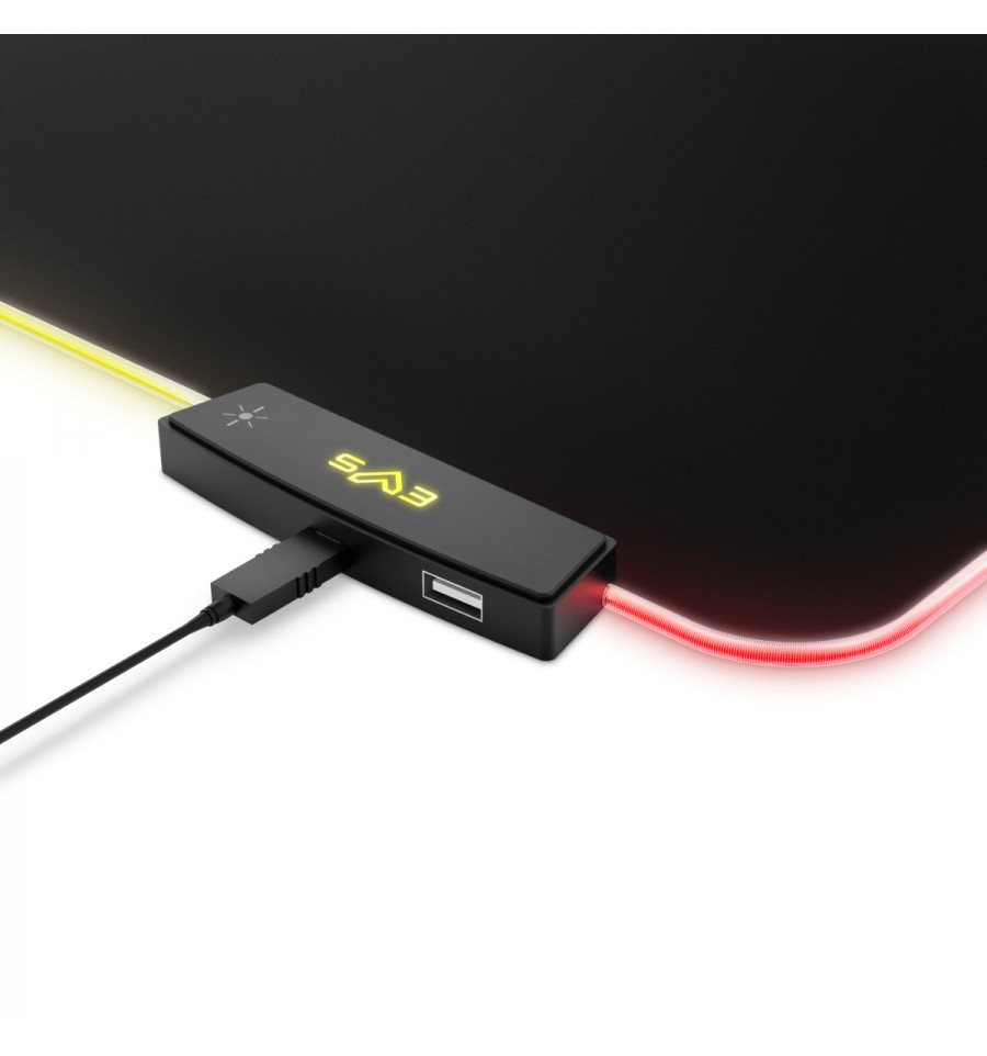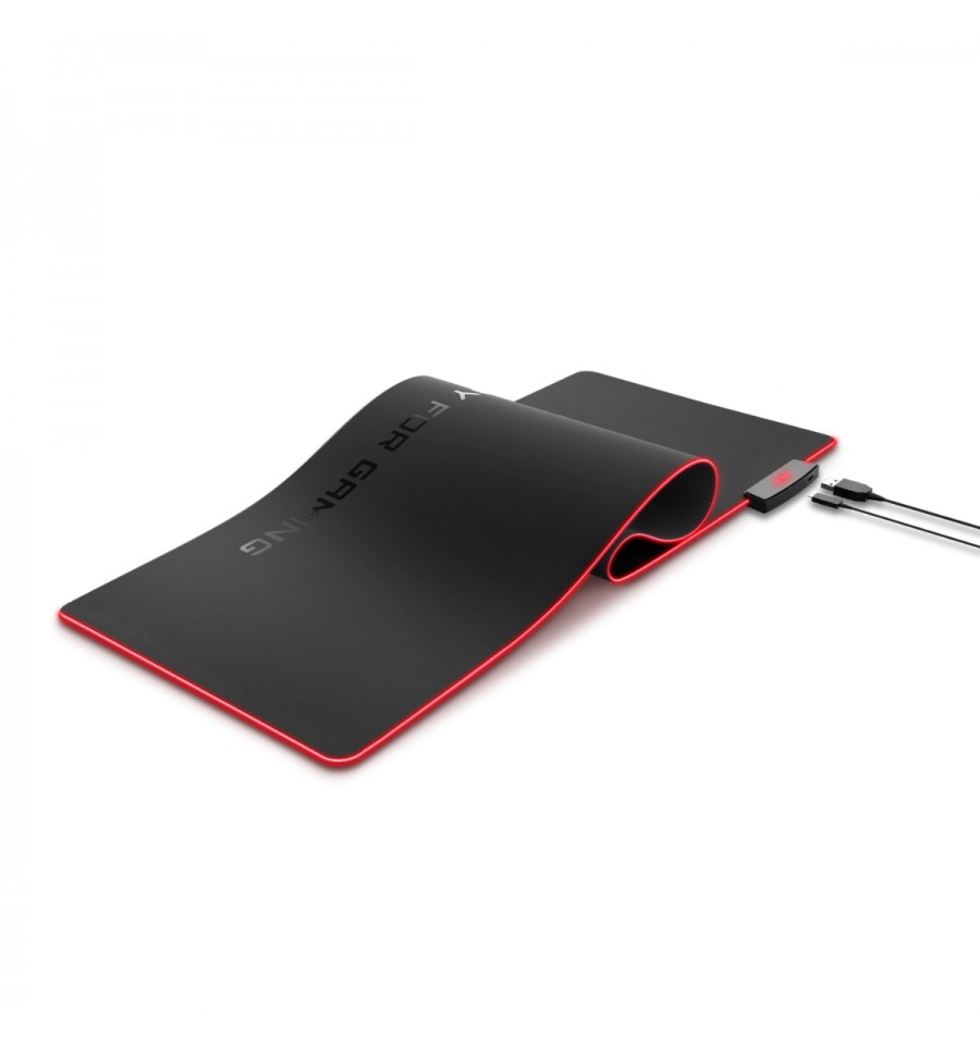 Alfombrilla gaming de tamaño XL (800 x 300 mm), con superficie resistente a líquidos, añadiendo un puerto extra USB para evitar perder conectividad en tu equipo y por supuesto múltiples modos de luz controlador de forma táctil.