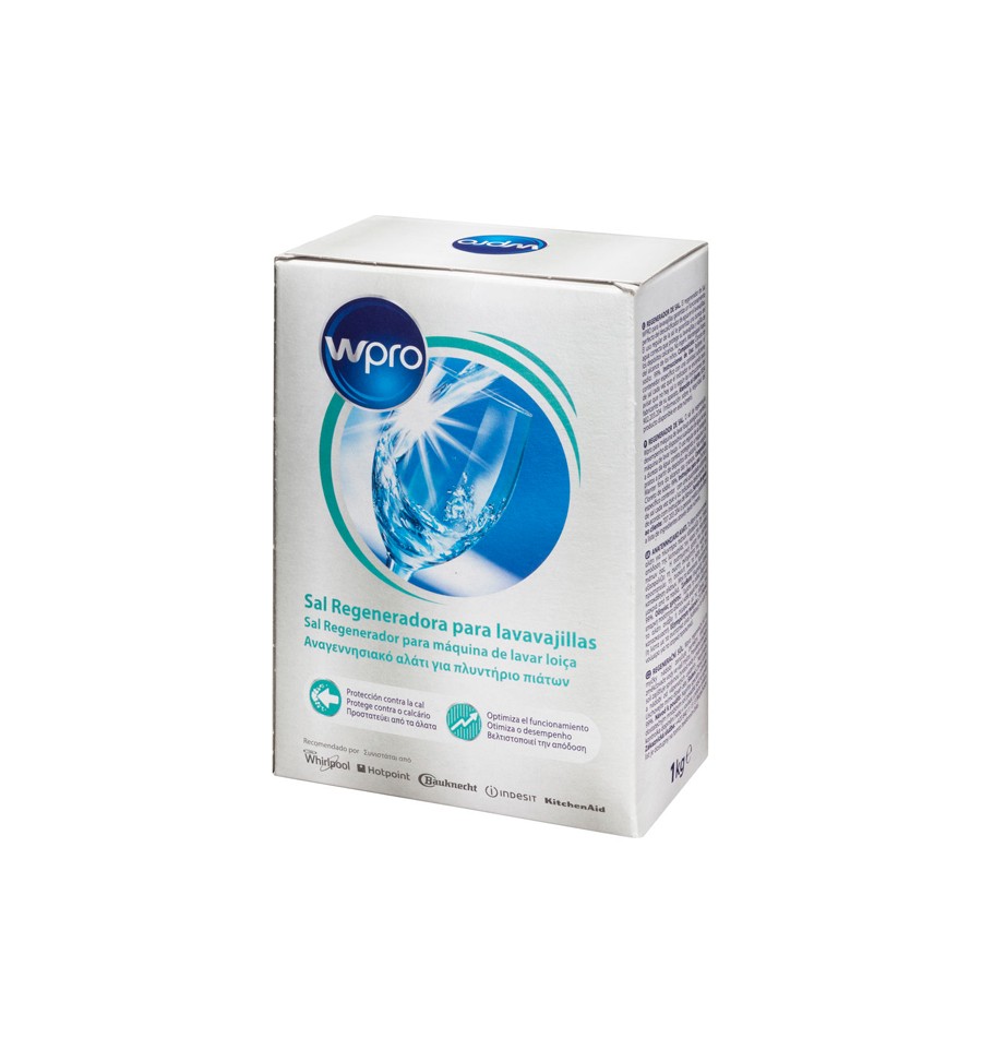 La sal regeneradora Wpro es la solución para proteger tu lavavajillas de los depósitos de cal mediante el control de la dureza de el agua que entra en la máquina. El efecto regenerador de la sal optimizará el rendimiento de la máquina, garantizando perfectamente platos limpios y sin grasa.