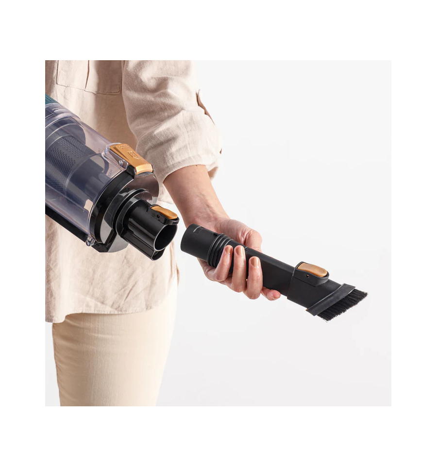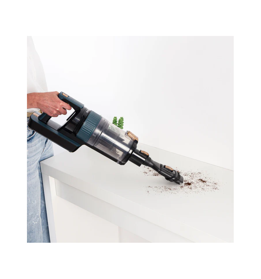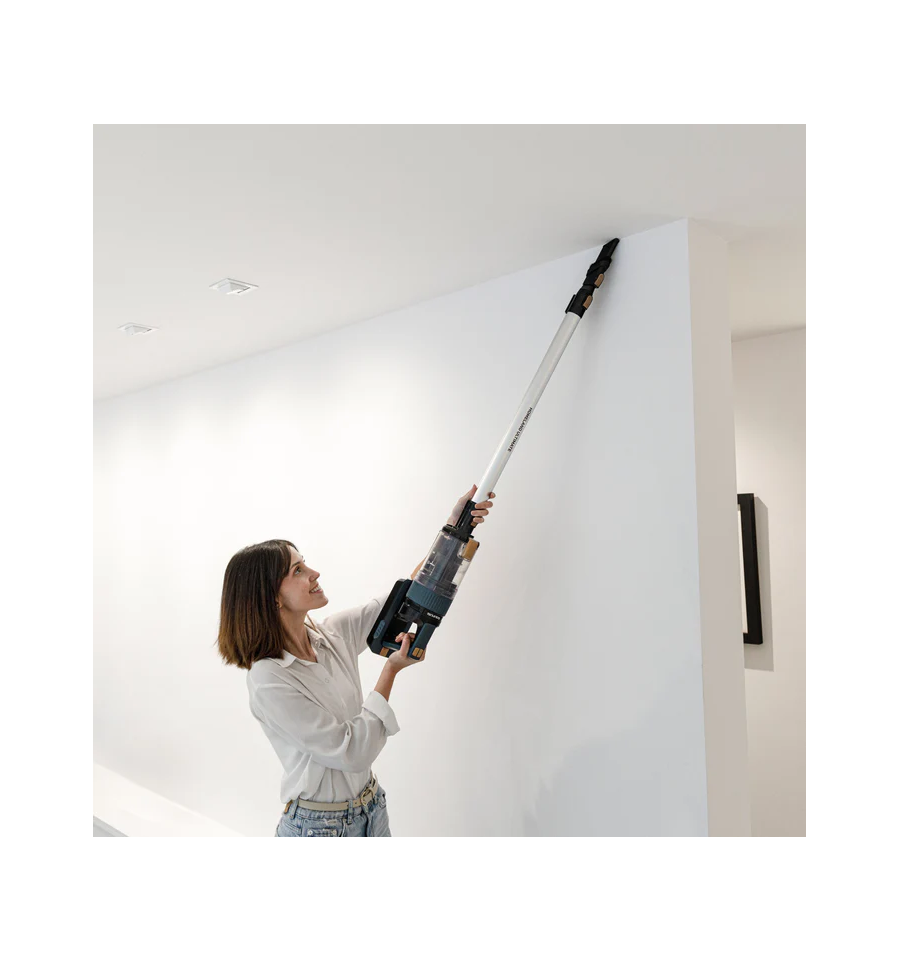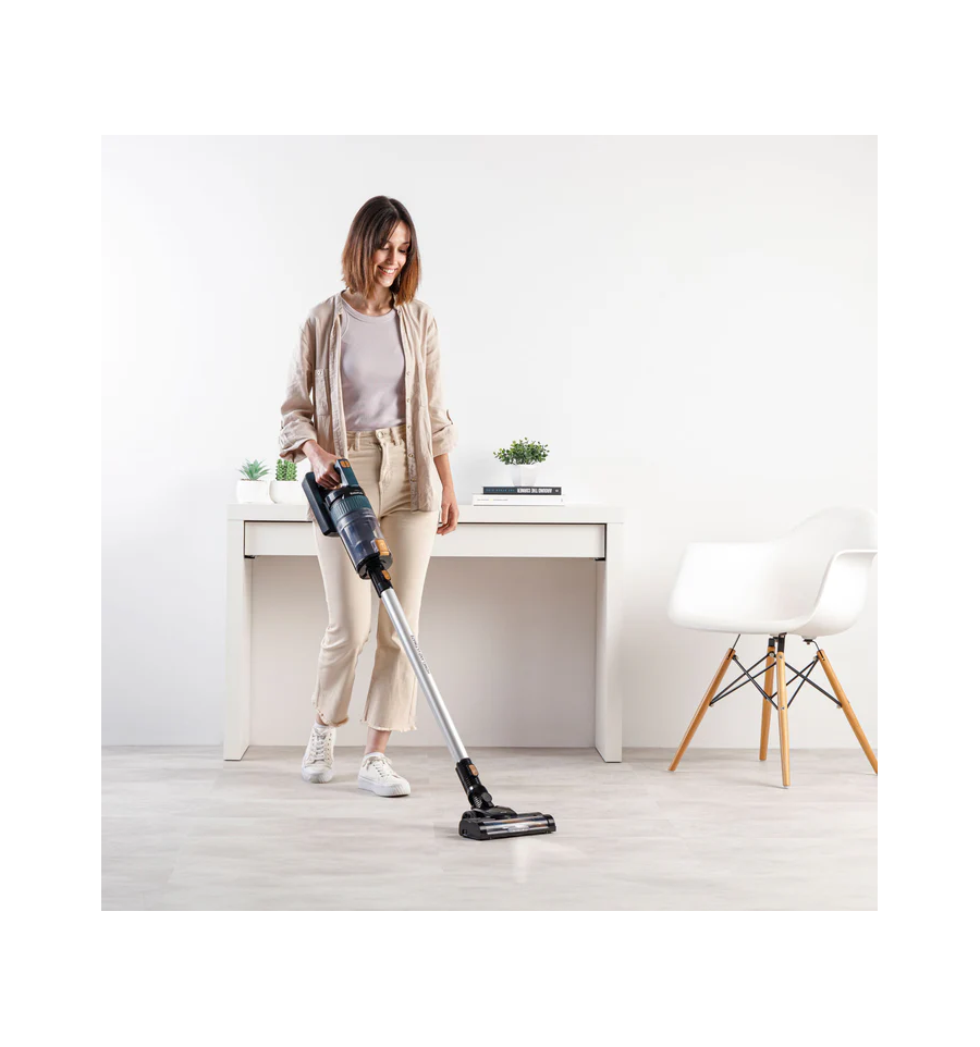 Autonomía máxima de hasta 55 minutos (Modo ECO y accesorios no motorizado). Aspira hasta 230m2 de una sola vez