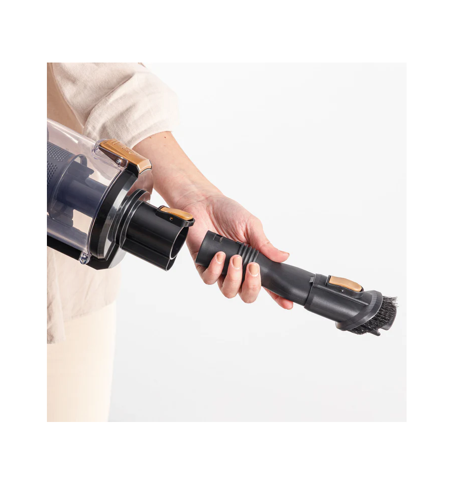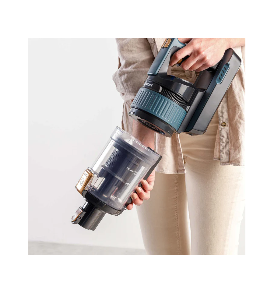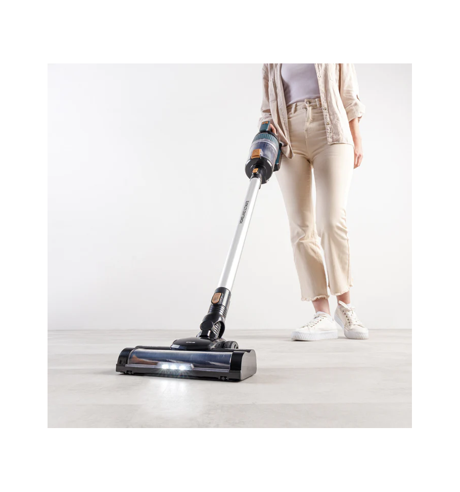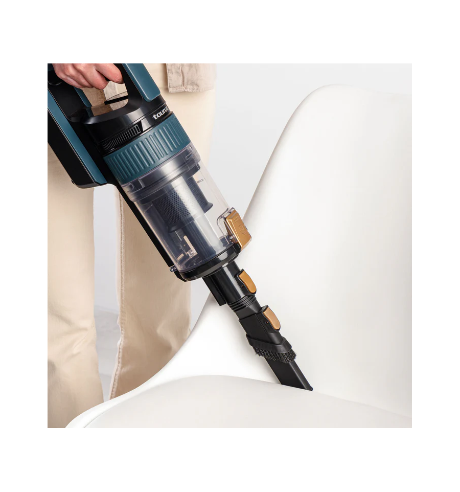 Autonomía máxima de hasta 55 minutos (Modo ECO y accesorios no motorizado). Aspira hasta 230m2 de una sola vez