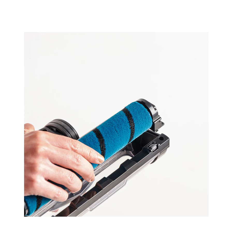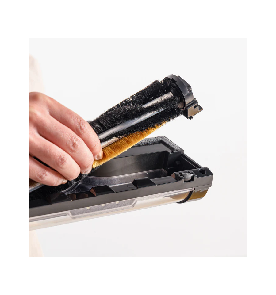 Zapata motorizada con dos cepillos intercambiables: ALL ROAD, para todas las superficies, y FUZZY, para todos los suelos especialmente indicado para parquet.