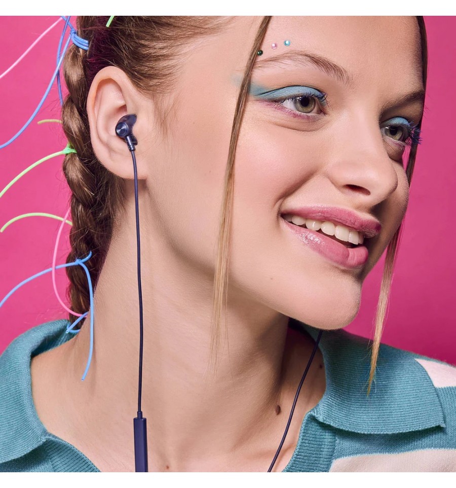 Auriculares de botón con ajuste al canal auditivo y aislamiento acústico.
