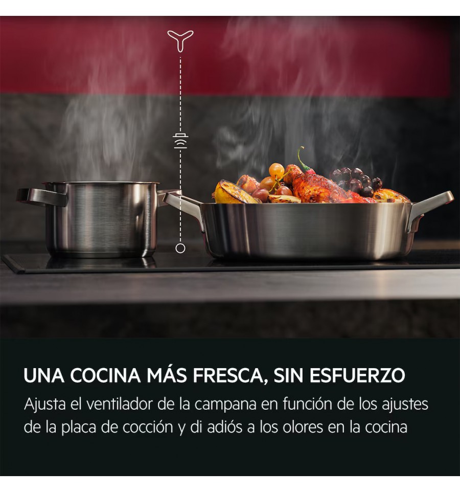 Hob2Hood®: sincroniza automáticamente la campana con la placa de cocción.