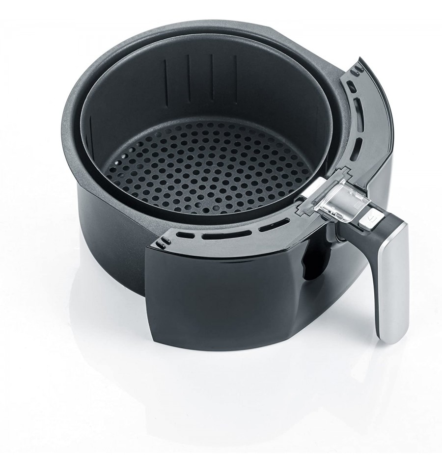 Calidad Alemana, carcasa con aplicaciones en acero inoxidable, fácil de limpiar gracias al efecto antiadherente de la cesta y su soporte