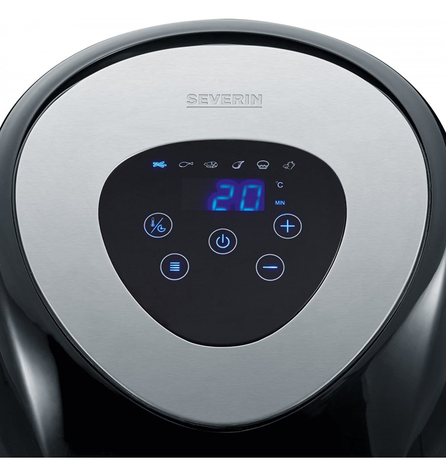 Uso fácil y seguro: pantalla LCD táctil intuitiva, temporizador de 60 min con señal de aviso, temperatura regulable entre 80 y 200°C, cesta de fritura para 3,2 l
