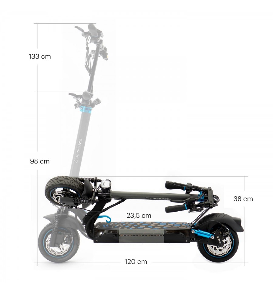 Luces: Foco frontal de alta luminosidad, intermitentes, leds en la base y luz de freno trasera para que te vean mientras circulas.