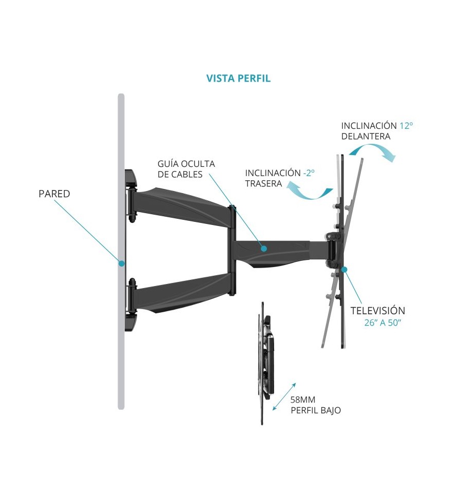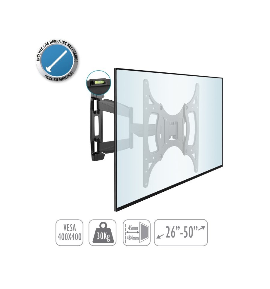 Compatibilidad universal: para monitores o televisores de 26" a 50", con ajuste VESA hasta 400x400 mm.