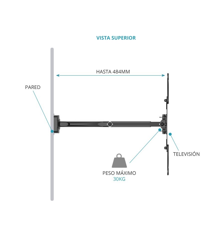 Distancia a la pared: de 45 mm (plegado) a 484 mm (desplegado).