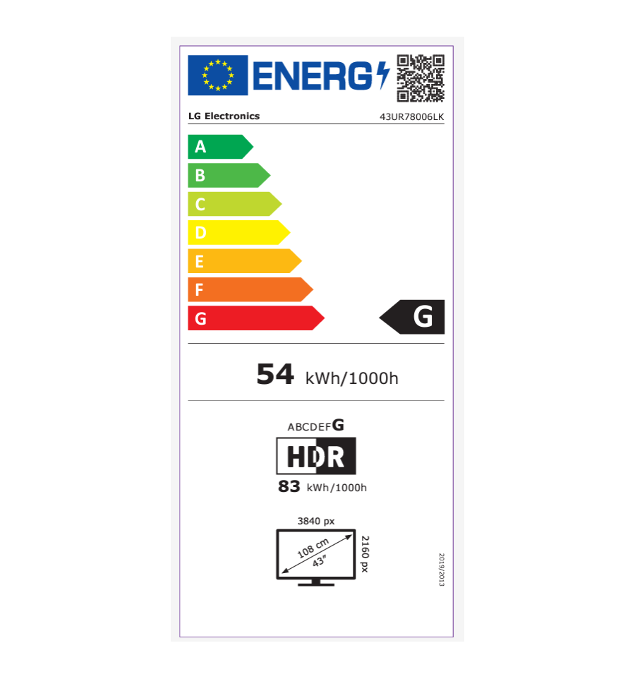 LG UHD 43UR78006LK. Diagonal de la pantalla: 109,2 cm (43"), Resolución de la pantalla: 3840 x 2160 Pixeles, Tipo HD: 4K Ultra HD, Tecnología de visualización: LCD, Forma de la pantalla: Plana, Tipo de retroiluminación LED: Direct-LED. Smart TV. Relación de aspecto nativa: 16:9. Wifi, Ethernet. Color del producto: Negro