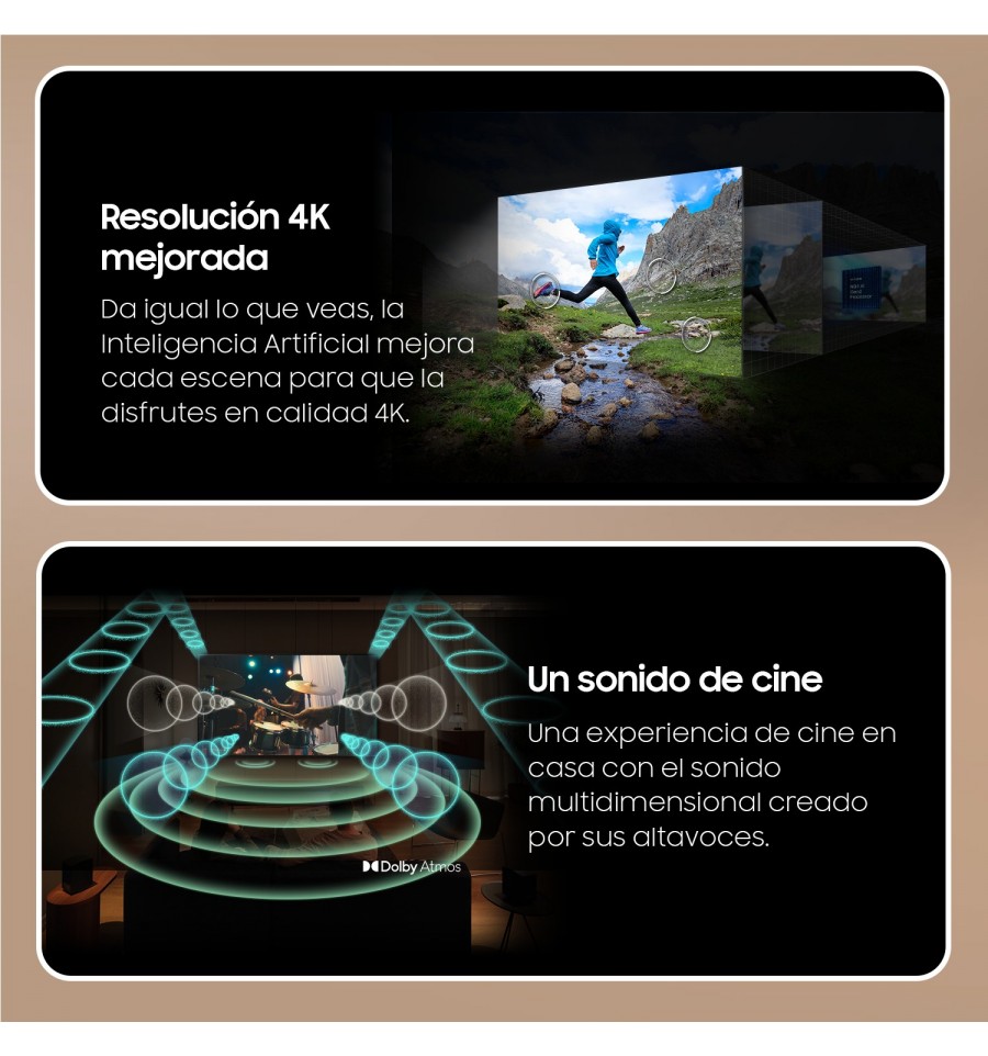 Tecnologías Samsung (AV/TV) Adaptive Sound Pro, Buds Auto Switch, NQ4 AI Gen2 Processor, Object Tracking Sound Lite, Q-Symphony, Smart Calibration, Ultra Viewing Angle