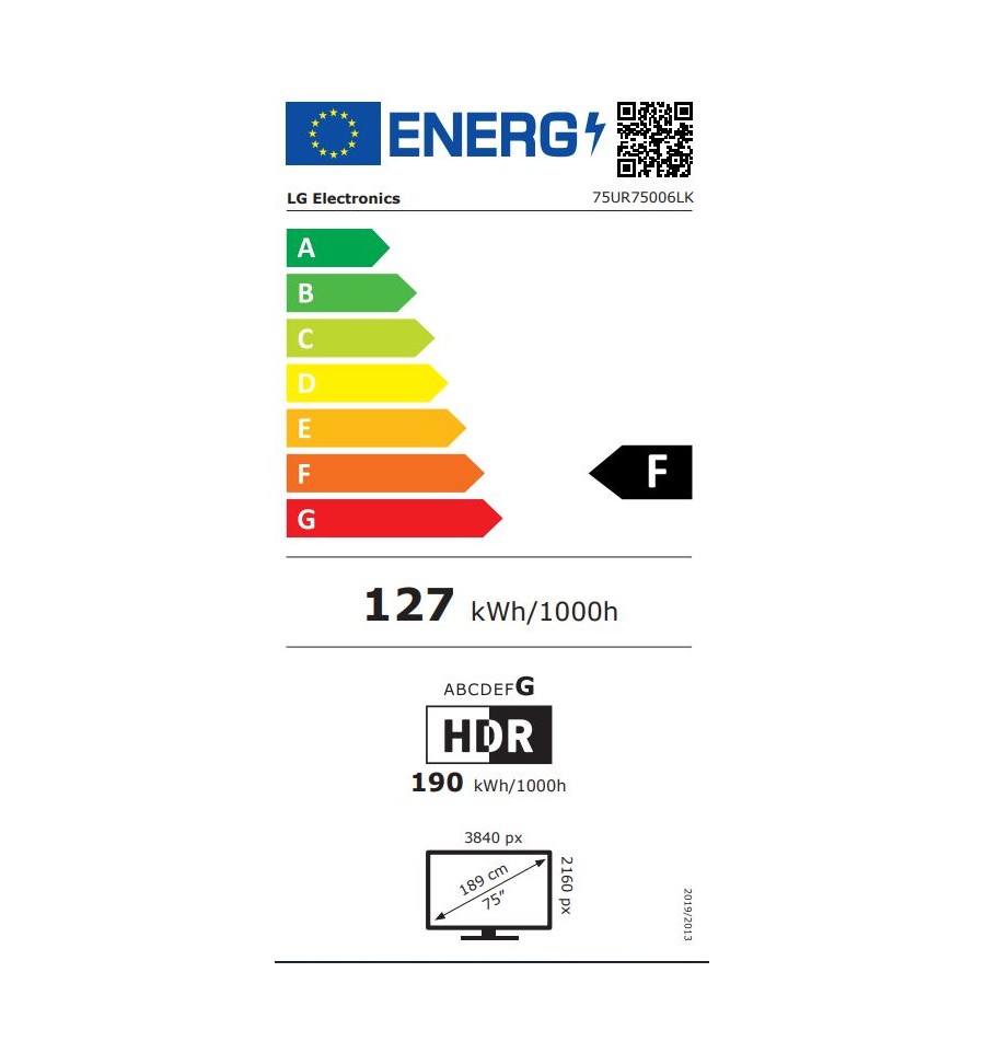 Consumo de energía (HDR) por 1000 horas 190 kWh