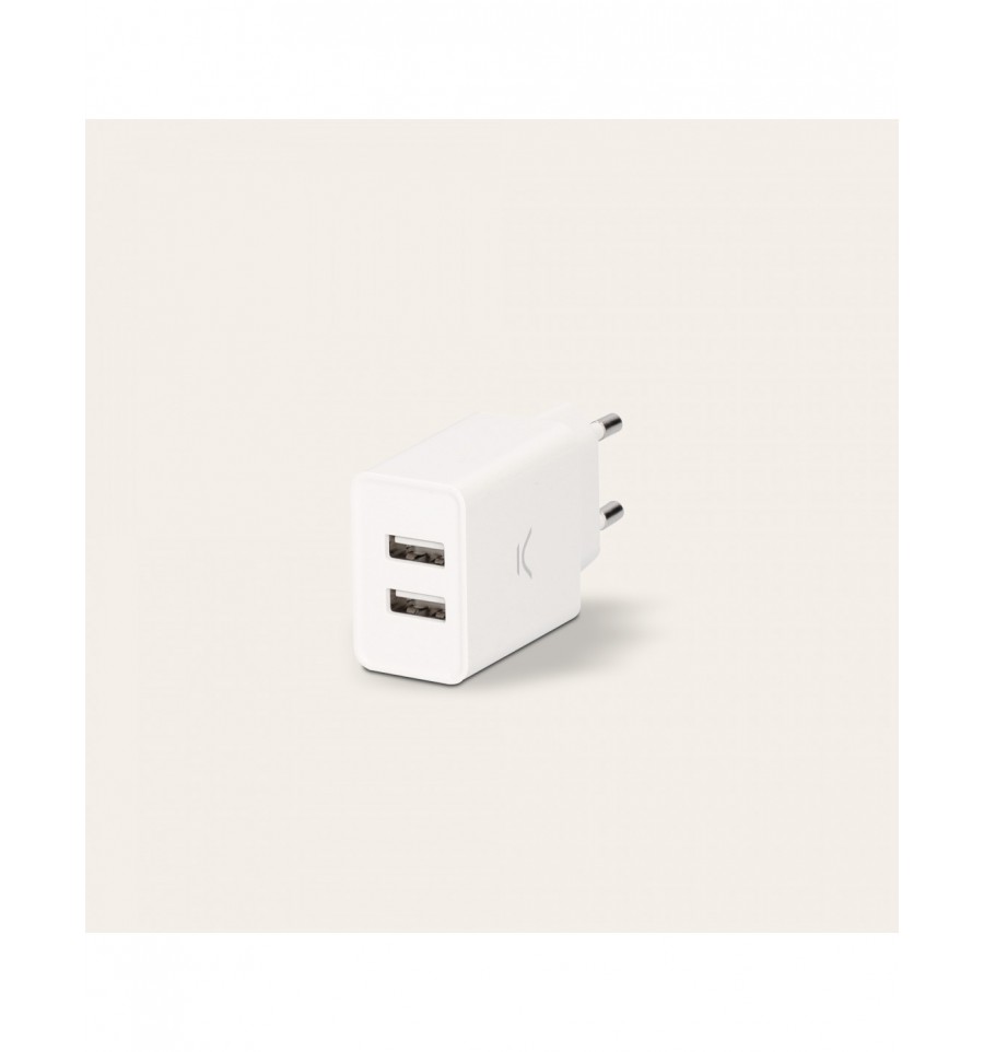 Un práctico y potente cargador de casa que te permite conectar hasta dos dispositivos a la vez. Su práctico tamaño te permite transportarlo fácilmente. Información Técnica Cargador de red con 2 puertos USB 2.4A Capacidad entrada: 100-240 V Parámetros salida: 5V 2.4A Funciones de protección: sobrecalentamiento, aumento de tensiones, reinicio automático en cortocircuitos Si se utilizan los dos puertos USB de forma simultánea, la intensidad se repartirá entre las dos conexiones