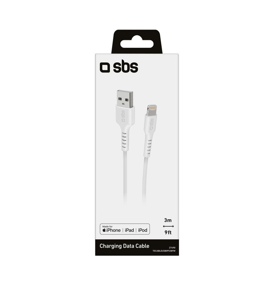 El cable con certificado Made For Apple tiene 3 metros de longitud para cargar tus dispositivos Apple y transferir datos.