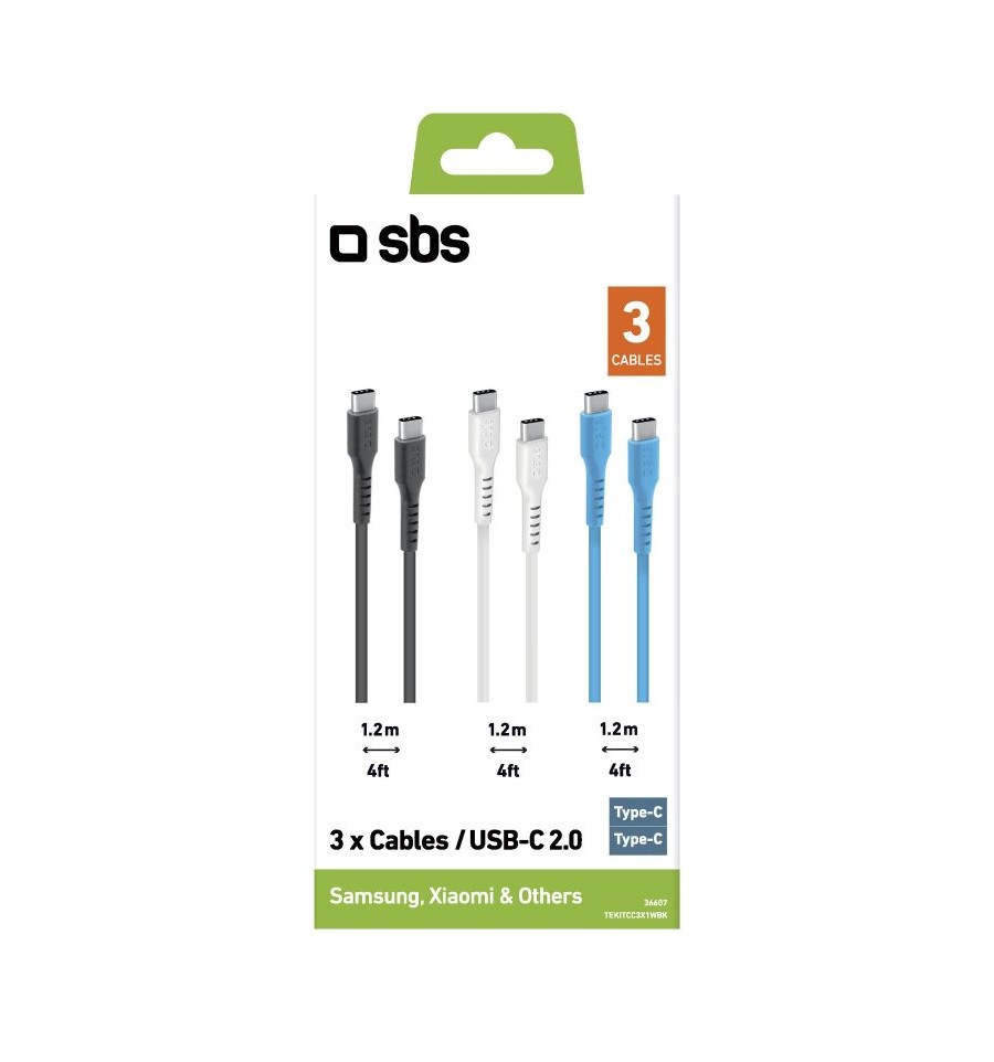 Los cables son, respectivamente, negro, blanco y azul. Si debes cargar varios aparatos y usas un solo cargador, podrás distinguir fácilmente el cable al que están conectados. El acabado antienredos permite un uso fácil sin que se formen fastidiosos nudos