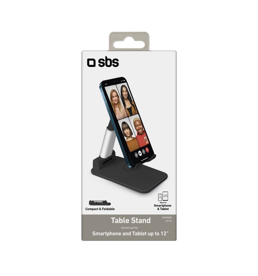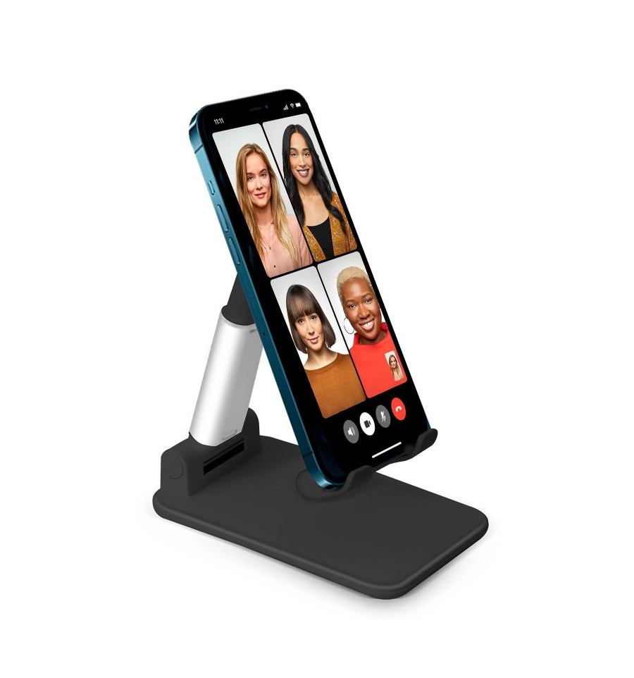 El soporte de mesa puede volver a cerrarse. De este modo, alcanza un tamaño excelente para llevarlo en una bolsa o una mochila. Haz una videollamada a quien quieras incluso en una mesa de pic-nic o en la mesita del tren.