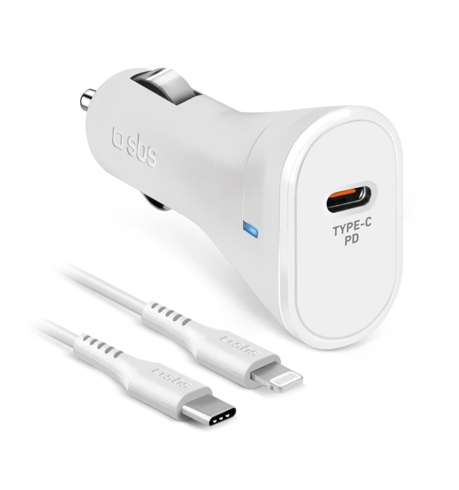 Entra en la oficina con los dispositivos ya cargados. Este kit compuesto por cargador de coche de 20 W y cable USB-C con Lightning es la solución más apropiada para cargar dispositivos como iPhone o iPad mientras estás de viaje.