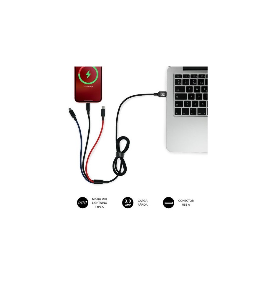 Productos compatibles Ideal para cargar teléfonos y tabletas Android/IOS o dispositivos como power banks y/o auriculares Bluetooth. Carga hasta tres dispositivos a la vez