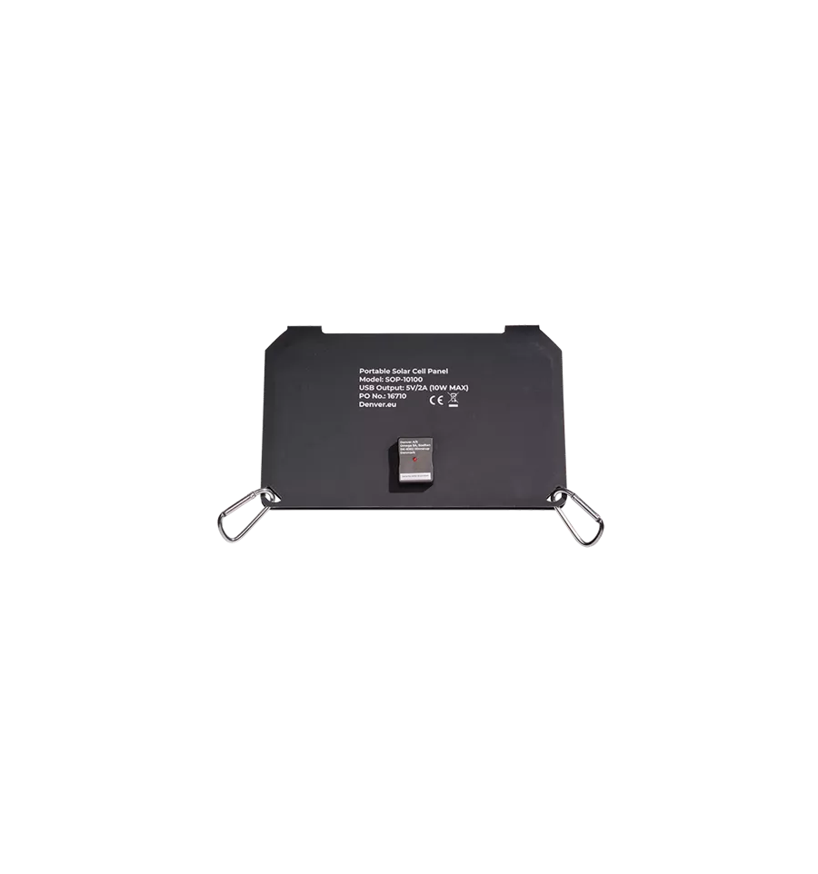 DENVER SOP-10100 Panel de celda solar portátil con un total de 10W de salida Salida USB-A con 5V~2A Plegable para facilitar el transporte. Diseño delgado Silicio monocristalino + ETFE